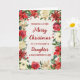 Joyeux Noël pour fille et fille en droit carte avec des fleurs d'aquarelle rustique et motif en bois vintage.
