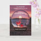 Bonne carte d'anniversaire à votre belle fille et fils en droit. Une image sur un littoral avec une orbe de verre et deux coeurs comme coucher de soleil de la plage et derrière l'eau.