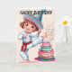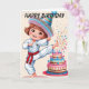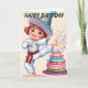 Carte Fille Kawii donnant un coup de pied au gâteau d'an