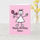 Caricature mignonne d'une mignonne fille souriant et tenant deux fleurs. La carte a un arrière - plan rose mais il est facile de le modifier à une couleur différente ou un blanc minimal agréable. Personnalisez facilement cette carte en modifiant le texte modèle à l'avant et à l'intérieur. Merci d'avoir vu mes designs !