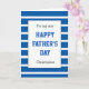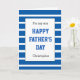 Il s'agit d'une carte de Fête des pères bleue personnalisée pour le fils, qui peut être personnalisée sur le devant avec son nom. L'intérieur de cette carte de Fête des pères moderne bleue Happy lit un message de Fête des pères, que vous pouvez facilement personnaliser si vous le souhaitez. Le dos a un endroit pour vous personnaliser avec l'année. Cela lui ferait un souvenir unique.