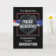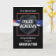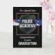 Félicitez votre fils pour son diplôme d'académie de police. Un arrière - plan noir déclenche le texte blanc. Le drapeau est plié derrière la forme du badge.