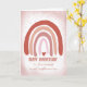 Cette carte de voeux est conçue pour véhiculer la chaleur, l'amour et la célébration, en utilisant des tons roses doux, un arc-en-ciel couleur aquarelle, et des sentiments sincères qui mettent l'accent sur les aspects durables, spéciaux et chéris de la relation d'un couple. Un arc-en-ciel peint avec grâce enjambe la carte, se mêlant harmonieusement aux teintes délicates. Au centre de l'arc-en-ciel, les mots "Happy Anniversary" sont élégamment écrits dans une police moderne et design, entourés de subtils motifs ou textures qui ajoutent à l'attrait visuel de la carte.