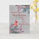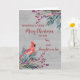 Joyeux Noël pour fils et fille en droit carte avec aquarelle feuillage, un cardinal et motif de bois et verset réfléchi.