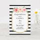 Félicitations pour votre carte de jour de mariage pour gendre et gendre avec des rayures noires et blanches, des fleurs roses et des vers sentimentaux.