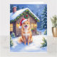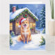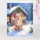 Carte Finnish Spitz Snowy Cabin Santa Hat Christmas Art