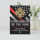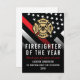 Celebrate exceptional dedication and bravery with this striking Firefighter of the Year design. It features a bold firefighter flag with classic black-and-white stripes and a powerful thin red line to honor courage and sacrifice. This card makes a meaningful way to recognize a firefighter, lieutenant, captain, or chief for outstanding service, commitment, and leadership. A distinguished keepsake to highlight their hard work, honor their achievements, and show appreciation for the impact they make in their community.