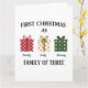 Celebrate the most precious milestone of a new arrival with this personalized and heartwarming "First Christmas As Family of Three" design. It features three beautifully patterned Christmas presents in festive holiday colors (red, green, and cream). The design allows for easy customization of three names (e.g., Mommy, Daddy, Baby's Name) and the option to adjust the text to commemorate a family of any size (e.g., Family of Four, Family of Five). This versatile design is perfect for creating keepsake ornaments, custom apparel, holiday cards, mugs, or party favors, making it a memorable gift for new parents or a wonderful way to celebrate a baby's first holiday season.