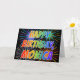This vibrant, multicolored and fun birthday greeting card design features the message "HAPPY BIRTHDAY," and the common first name "MONICA" with the letters having a colorful rainbow spectrum like gradient coloring pattern. The background of the front also features a colorful pattern inspired by the look of bursting celebratory fireworks. The inside features a custom greeting message, or could perhaps be cleared and left blank if a message is to be written by hand instead. A birthday greeting card like this could be a fun way to send a customizable birthday greeting message to somebody named Monica. [~Z0000350]