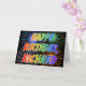 This multicolored and fun birthday greeting card design features the message "HAPPY BIRTHDAY," and the common first name "RICHARD" with the lettres having a colorful rainbow spectre like gradient coloring pattern. The background of the front also features a colorful pattern inspired by the look of bursting celebratory fireworks. The inside features a custom greeting message, or could perhaps be cleared and left blank if a message is to be written by hand instead. A greeting card like this could be a fun way to celebrate the birthday of somebody named Richard. [~Z0000350]