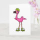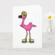 Carte Flamant en skateur avec des patins à roulettes et