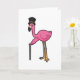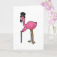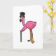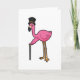 Carte Flamant rose en marié avec chapeau et canne