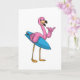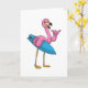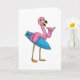 Carte Flamant rose en surfeur avec planche de surf