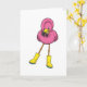 Carte Flamant sous la pluie avec des bottes en caoutchou