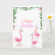 Carte Flamants roses adorables feuilles tropicales