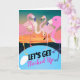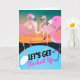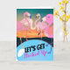 Faisons le plein, une carte d’invitation papier avec des flamants roses autour d’un trou d’eau avec un ciel couché. Customisez le texte sur la couverture et à l'intérieur de la carte avec vos informations sur l'événement de fête. Art. Image, et copyright © Shoaff Ballanger Studios, 2022.