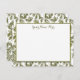 Une carte de notes avec des lettres de script élégantes pour votre nom, dans un cadre doré sur un élégant motif de roses vintages en blanc et d'or sur blanc.