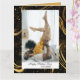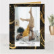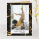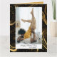 Elégante, mignonne et moderne - cette carte de Fête des pères présente votre photo préférée avec Papa dans un cadre noir tourbillon doré avec calligraphie moderne. Personnalisez le devant avec votre photo, nom, citation et souhaits (Bonne Fête des pères). À l'envers, il y a un design correspondant, et il y a un espace réservé où vous pouvez mettre votre texte préféré.