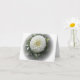 Une carte de vœux montrant une fleur de dahlia blanche. L'intérieur de la carte est vierge pour que vous puissiez écrire votre propre message personnel pour diverses occasions.