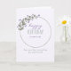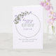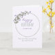 Carte Happy Birthday personnalisée avec une simple couronne de fleurs sauvages violets et une typographie douce. Dainty et design simple avec une palette de couleurs douces du lilas pastel, violet et vert. Vous avez la possibilité de modifier le message d'accueil sur le devant et l'intérieur est vide pour vous permettre de personnaliser comme vous le souhaitez.