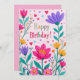 Une carte d'anniversaire vibrante ornée de fleurs colorées de formes et de tailles variées.