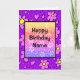 Illustration de fleurs de type marguerite dans les tons violets avec les coeurs et les points. Personnalisez facilement cette carte en modifiant le texte modèle. Sur le message d'accueil on peut lire 'Joyeux Anniversaire' et à l'intérieur on peut lire 'Profitez de votre journée spéciale'. Merci d'avoir vu mes designs !