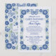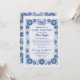 Cette invitation personnalisée pour une douche de cartes d'anniversaire est parfaite pour organiser une douche par courrier afin de célébrer un 50e anniversaire ou tout autre anniversaire marquant, invitant amis et famille à envoyer des cartes sincères à quelqu'un de spécial. Le design dessiné à la main présente une bordure florale dans le style Talavera rétro avec un cadre et un papillon en haut dans des tons bleus, entourant un centre personnalisable où vous pouvez modifier le nom, l'âge, les détails de la célébration, l'adresse postale, les informations de RSVP et les instructions pour l'envoi des cartes d'anniversaire. Le verso de l'invitation poursuit l'illustration florale coordonnée pour une finition cohérente et artistique. Idéal pour les célébrations de 40e, 50e, 60e, 70e ou 80e anniversaire, les surprises-parties, les hommages à distance et les projets de souvenirs, cette invitation personnalisée pour une douche de cartes d'anniversaire convient aux acheteurs à la recherche d'une invitation pour une douche de cartes pour un 50e anniversaire, une fête