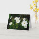 Photo de fleurs cosmos blanches, ressemblant à un petit cosmos d'étoiles parmi les feuille. La carte a été laissée vide à l'intérieur mais peut être customisée plus loin.