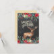 Joyeux script de typographie brossée à la crème Happy Holidays et un renne aquarelle peint à la main contre un arrière - plan en damier gris foncé avec bordures florales hivernales avec roses de pivoines rouges et blanches, poinsettia et feuillage saisonnier, pinecones et boughs de pin faisant une rustique merveilleuse campagne moderne vacances d'hiver / carte de voeux de Noël. ++++++++++++ Personnalisez-le avec votre texte et votre signature à l'envers ! +++++++++++++ Convient pour les envois saisonniers en famille, en entreprise ou à des particuliers.