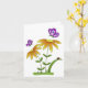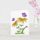 Une simple mais mignonne carte de vœux générique pour toutes occasions, comportant deux fleurs orange de dessin animé fantaisiste avec des feuilles vertes et des tiges vertes poussant à partir d'herbe verte saine. Une petite coccinelle rouge est assise sur l'une des feuilles. Deux papillons violets voltigent autour des fleurs.