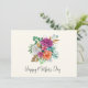 Carte de la fête des mères avec un arrangement floral contenant de jolies roses roses, orange et blanches entourées de feuilles vertes.