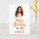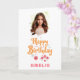 Célébrez un anniversaire spécial de fille avec cette carte personnalisée de charme! Doté d'un design floral dessiné à la main, joyeux texte "Joyeux Anniversaire" en écriture orangée, et d'une photo et d'un nom personnalisés. Idéal pour les filles, nièces, petites-filles ou amis.