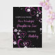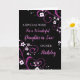 Carte d'anniversaire pour fille en droit avec de jolies fleurs noires et violettes et vers réfléchis.