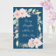 Carte de Fête des mères pour fille en bleu marine avec fleurs aquarelles roses et vers sentimental.