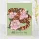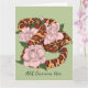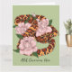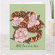 Un serpent de maïs enroulé avec trois fleurs roses sur fond vert clair, le tout dessiné en tatouage.