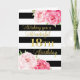 Bonne carte de 18ème anniversaire avec fleurs d'aquarelle rose, rayures noires et verset réfléchi.