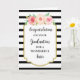 Félicitations pour votre carte de graduation pour soeur avec de belles fleurs d'aquarelle rose, rayures noir et blanc motif et vers sentimental.