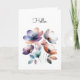 Une illustration aquarelle de jolies fleurs en turquoise, pêche, violet, bleu. Cette impression botanique est parfaite pour un simple salut Hello, mais vous pouvez changer le texte à votre salutation préférée. L'IA a aidé graphisme acheté à des fins commerciales. Oeuvre : DreamCafeArt
