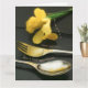 Les lys jaunes avec des gouttelettes d'eau brillent et scintillent sur une ancienne ardoise galloise.
