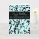 Carte d'anniversaire pour belle-mère en droit avec design moderne de fleurs turquoise et noire et verset réfléchi.
