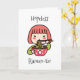 Sans espoir Ramen-tique. Jolis graphismes d'une fille japonaise aux cheveux roux mangeant des nouilles Ramen avec des baguettes. Carte mignonne et flirteuse pour la Saint-Valentin ou un anniversaire ou toute occasion romantique.