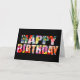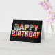 Une belle et élégante carte d'anniversaire avec un texte Happy Birthday découpé en fleurs colorées et papillons, sur un arrière - plan noir. À l'intérieur, vous pouvez modifier le style de police et le texte en cliquant sur le bouton personnaliser.