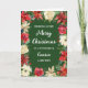 Joyeux Noël pour cousin et sa carte de femme avec des fleurs d'aquarelle rustique et arrière - plan vert forêt.