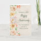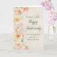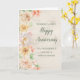 Joyeuse carte d'anniversaire mariage pour la cousine et son mari avec d'élégantes fleurs pastel aquarelle et la verdure printanière et un motif rustique en bois.