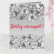 Bordures florales grises avec aquarelle grande carte de voeux imprimée par Alma Wad. Il est livré avec le texte en polices rouges " Boldog Nevnapot !" qui signifie "Joyeux nom jour " en hongrois.