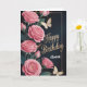 A graceful and elegant birthday card featuring soft pink roses, delicate gold accents, and fluttering butterflies on a deep dark background. This floral birthday design blends luxury and romance, making it perfect for celebrating women of all ages. Ideal as a personalized birthday card for her, this aesthetic rose illustration adds a timeless and classy touch to any birthday celebration. Perfect for moms, sisters, friends, or anyone who loves chic floral designs.