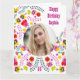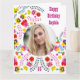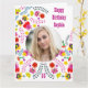 Carte d'anniversaire avec des fleurs d'art populaire mexicaines colorées en rose, rouge, jaune et bleu. Téléchargez votre photo à ce design dynamique et girly décoré à l'intérieur et à l'extérieur avec des arrangements floraux. La page d'accueil se lit Joyeux Anniversaire [votre nom] dans la typographie occidentale et vous pouvez également ajouter n'importe quel âge (ou laisser vide si pas nécessaire). À l'intérieur, le message peut être laissé tel quel, modifié ou supprimé. Un beau choix pour une quinceanera, un sweet sixteen, une amie ou un parent.