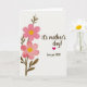 Designed with a softly textured off-white background, this card balances a gentle floral illustration on the left with a loving message on the right. A vertical stem in muted earthy brown rises along the left edge, with slim, elongated leaves branching out in the same calm tone. Near the top, two five-petaled flowers in rosy pink tilt slightly toward the words, as if leaning in with quiet affection ❤️. Each bloom has a warm golden-yellow center, and the petals show light, watercolor-like shading that feels tender and friendly. On the right side, the main text sits in an informal, calligraphy-like style, with “it’s mother’s day!” placed prominently in dark lettering. Just below the exclamation, a small fuchsia heart adds a bright pop of color, followed by “love you MOM” on the next line, with “MOM” in uppercase for emphasis 🌼. The flowers’ pink petals and yellow centers stand out against the off-white canvas while the fuchsia heart sits centered beneath “day!”