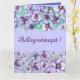 Bordures florales violettes avec aquarelle imprimé grande carte de voeux par Alma Wad. Il est livré avec le texte "Boldog Nevnapot !" qui signifie "Joyeux jour du nom " en hongrois.