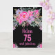 Élégante carte de 75e anniversaire avec un design floral aquarelle rose sur fond noir. Personnalisez avec votre nom et texte.
